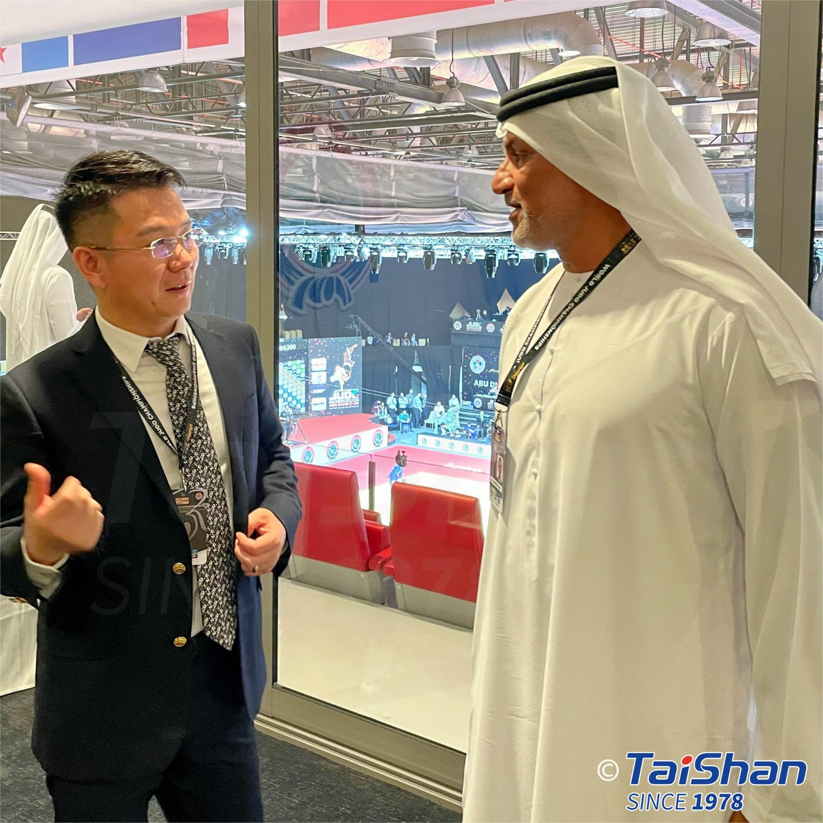 Mr. Bian Qingfeng, Chairman of Taishan Sports, was honored to participate in this prestigious event. He engaged in insightful discussions and captured memorable moments with fellow attendees. Mr. Bian also had productive exchanges with esteemed guests including Mr. Vizer, President of the International Judo Federation, and the President of the European Judo Union, fostering innovation and development in judo sports. Proud to contribute to the advancement of judo athleticism worldwide!