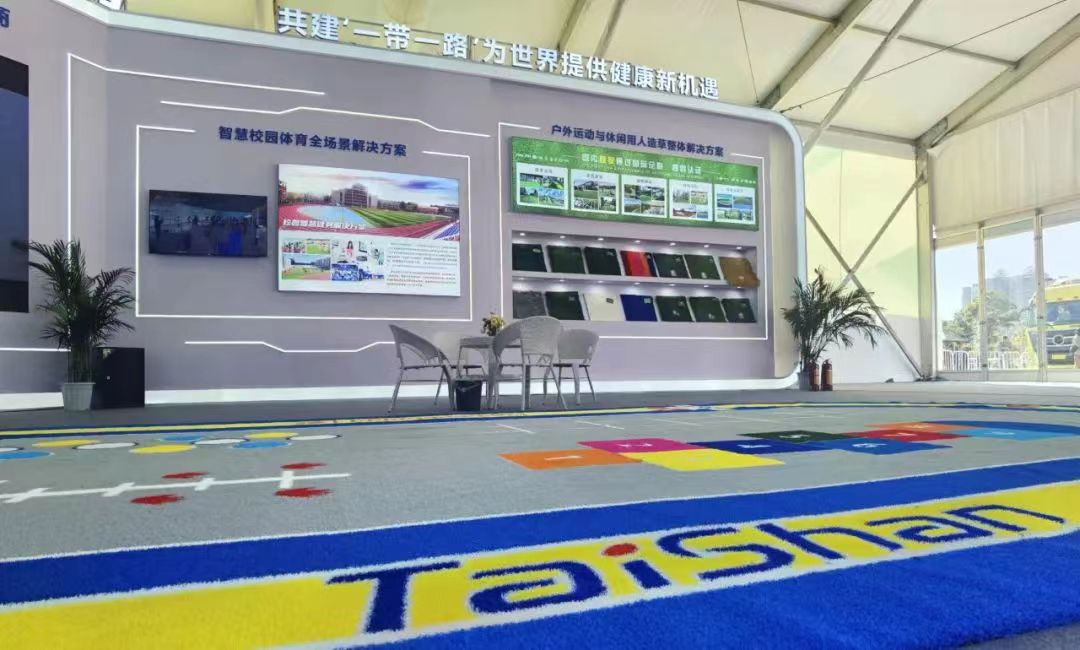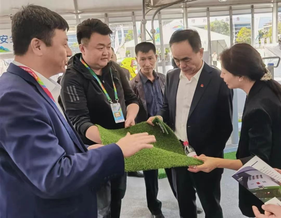 球王会体育携户外运动与休闲人造草整体解决方案亮相会场。作为国内首家通过足联、曲联双认证的企业可根据不同用户的户外运动需求,生产多种类型的户外运动草坪。