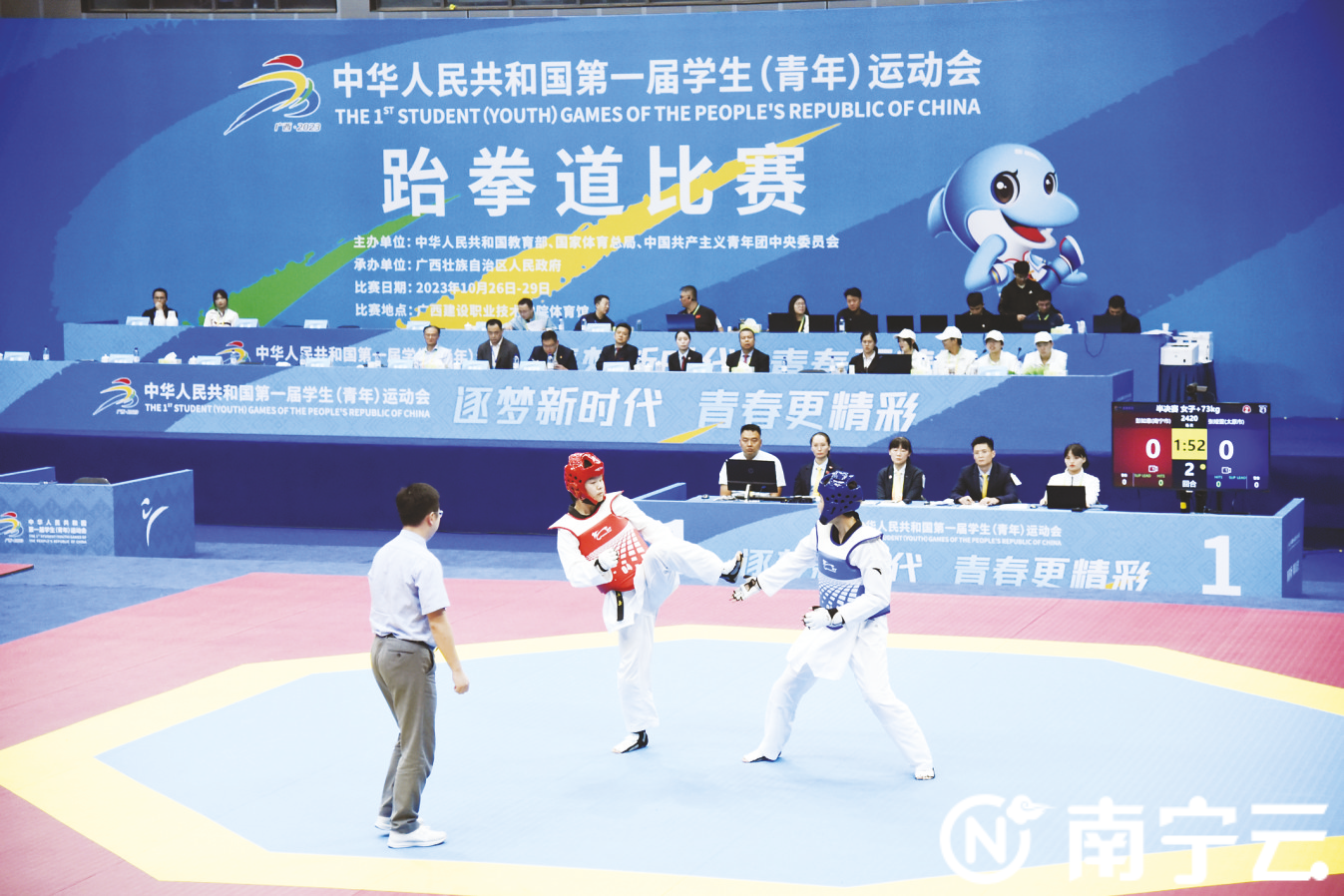 近日,第一届全国学生(青年)运动会跆拳道比赛在广西开赛。来自全国50支代表队共计193名优秀青年选手汇聚一堂,在球王会体育提供的跆拳道系列器材上展开激烈角逐。