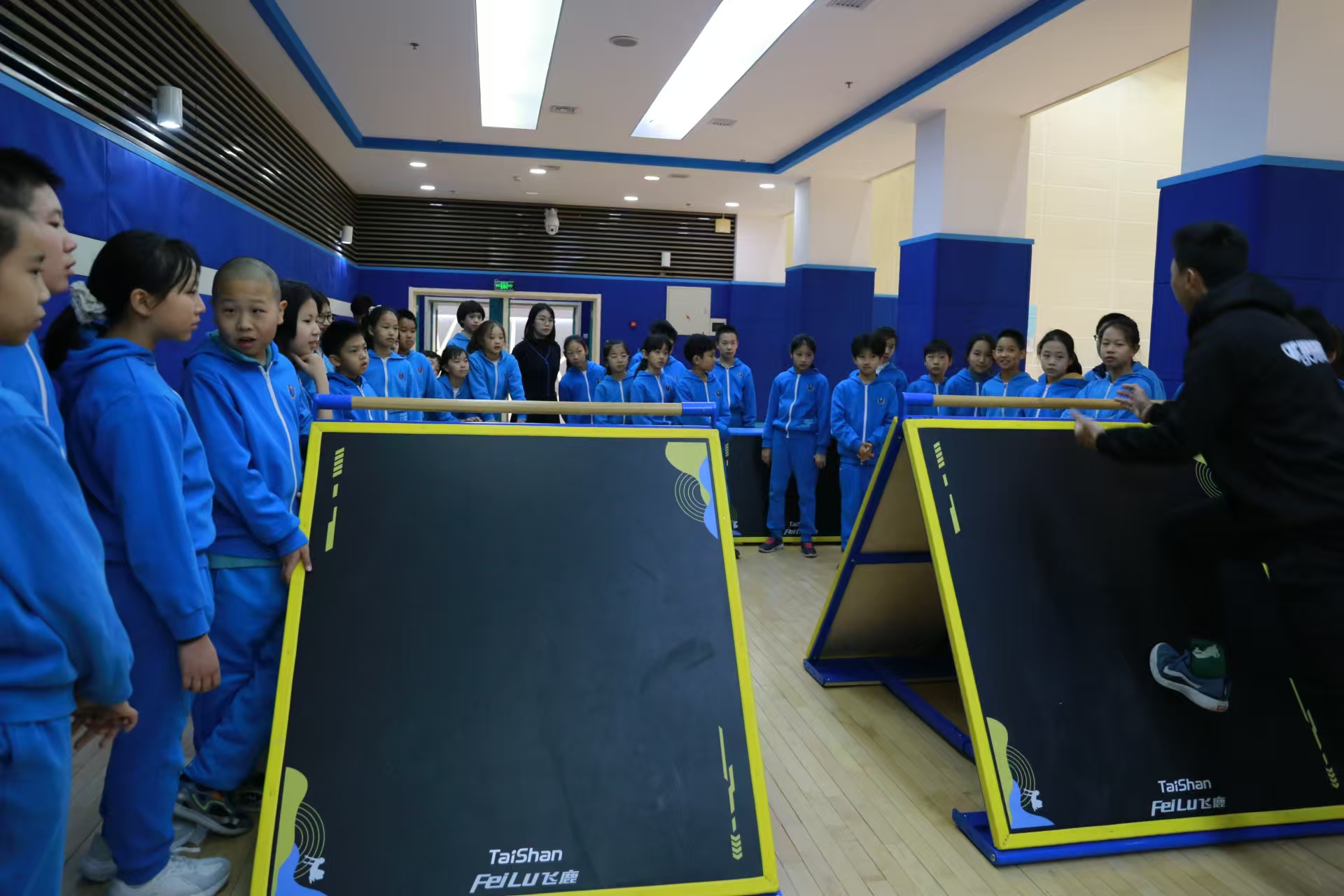 球王会体育校园跑酷器材在北京市东城区史家胡同小学一展身姿。