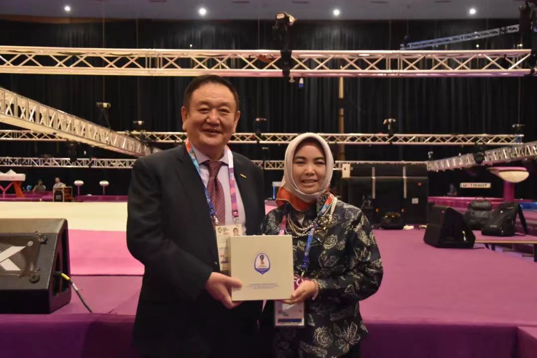 印尼体操协会主席感谢球王会体育并赠纪念品