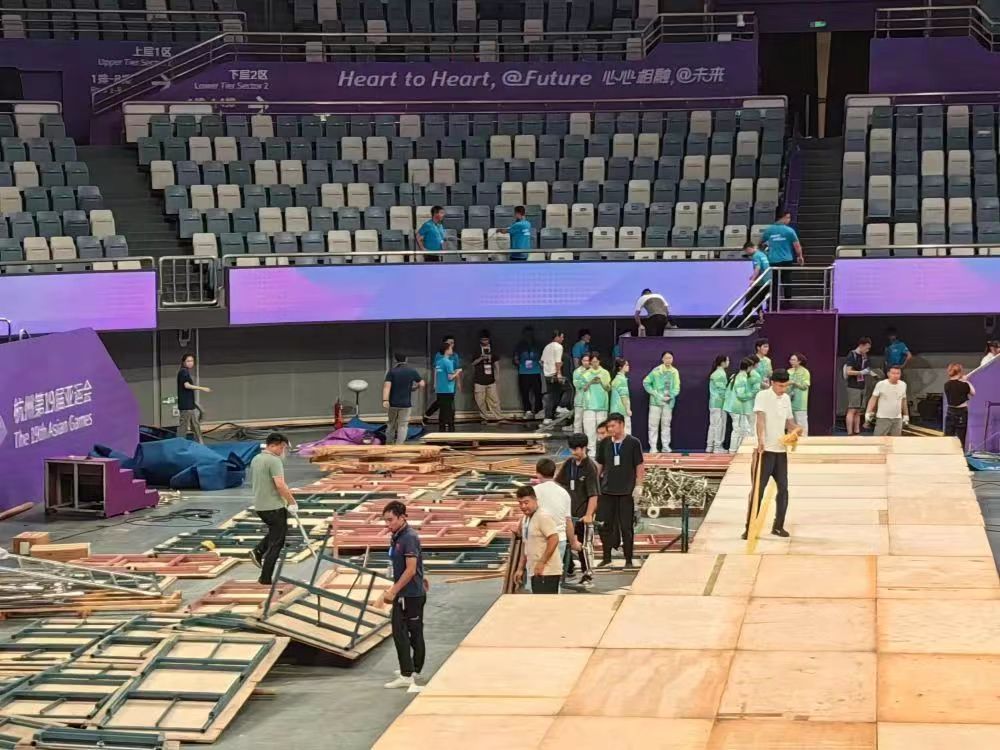 接到撤场命令后,球王会体育服务保障团队迅速行动、科学调配、团结协作、不惧辛劳,提前完成撤场任务,再一次经受住了国际大型体育赛事的考验。同时,在撤场工作中,场馆人员、现场工作人员和广大志愿者,也都积极主动加入到球王会的队伍中来,对撤场工作给予了大力支持,充分体现了杭州亚运会,不仅是一届智慧精彩的盛会,更是一场团结友谊的盛会。