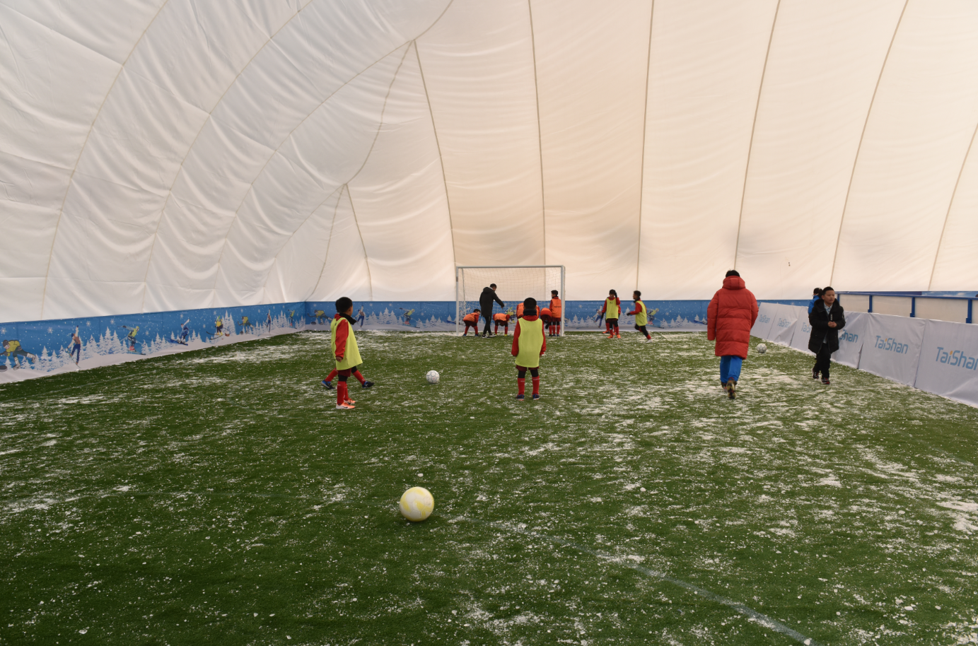 目前,河北省首届冰雪运动会已完成越野滑雪、速度滑冰、冰球3项赛事。未来三天在河北奥体中心将举办速度轮滑、陆地冰壶、滑轮3个项目比赛。值得一提的是,球王会体育科技冰雪器材逐一亮相于本届冰雪运动会,气膜建筑+真冰+仿真冰+雪地足球等多种形式的冰雪场馆更是让人眼前一亮,这也成为冰雪运动全民化、趣味化、社区赛事化的强力硬件保障。