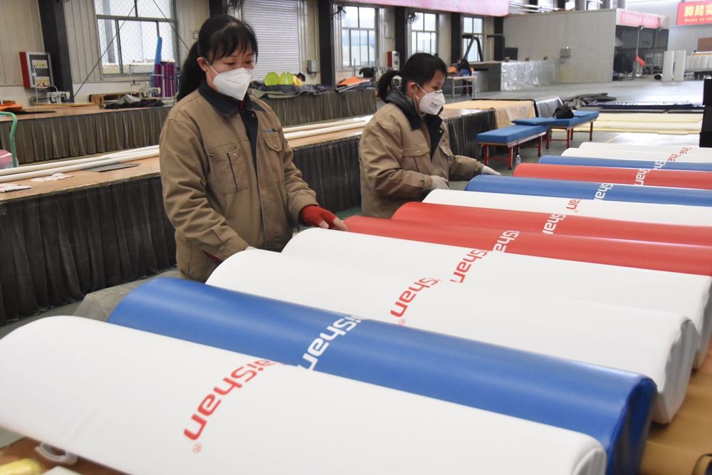 “由于约旦订单紧急,球王会1月29日就复工了,所有人员戴口罩上班,公司每天派专人对厂区、车间及餐厅、宿舍等公共场所进行全面消毒,上岗人员每天两次测量体温,大家错时就餐,并单人单桌,避免聚群。” 球王会体育公司缝纫班组长田伶霞说。