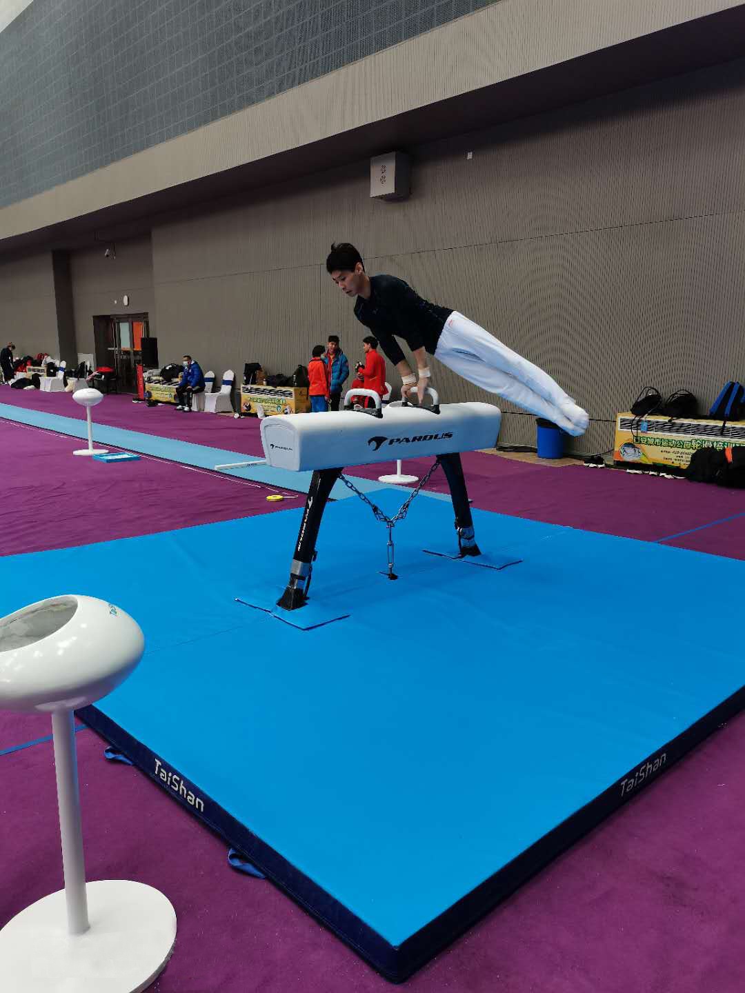 赛前,各省运动员来到场地进行赛前热身,放眼望去,球王会Pardus品牌的碳纤维复合材料竞技体操器材上尽是挥汗如雨的青年健将。科技感十足的器材材料与出色的器材弹力让运动员们迅速的适应器材,提升竞技状态,迎接即将到来的终极考验。