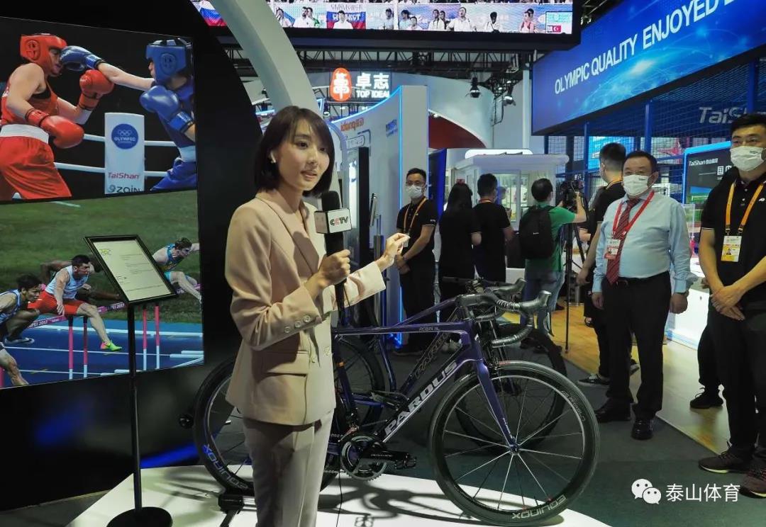 央视新闻频道消博会专题现场直播来到球王会体育展厅,央视新闻记者宋菀在球王会瑞豹运动自行车展位单手感受球王会瑞豹碳纤维自行车的轻量化高刚性的“黑科技”高性能,圈粉无数。
