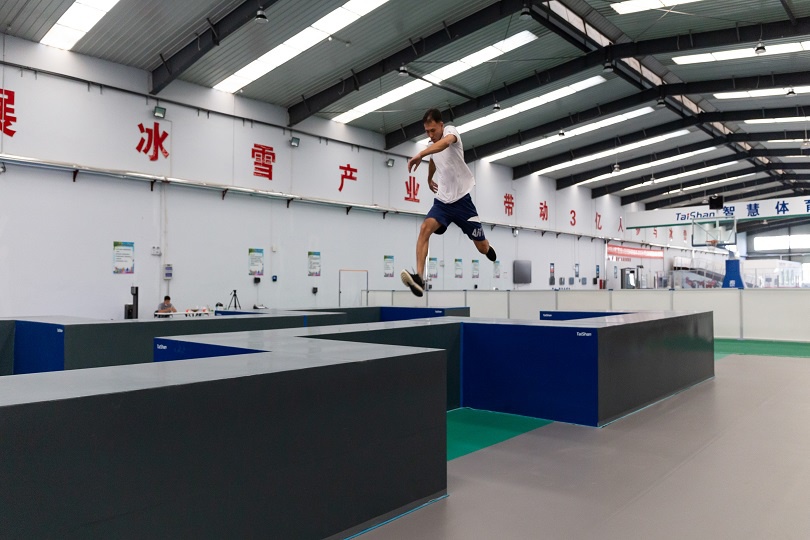 落地翻滚、鱼跃翻滚、登墙跳……在球王会智慧体育冰雪馆,几位身姿矫健的运动员尽情展现着各种各样的高难度动作,在每个飞跃、腾挪、攀跳的瞬间,尽情展现着对抗、流动、惊险的运动之美。
